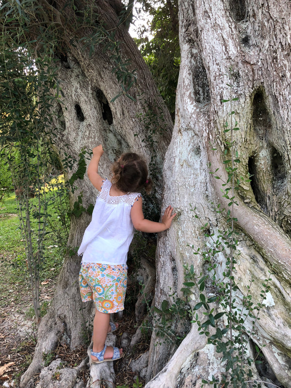 Wenn ich heute mit dem Traktor über das Feld fahre, die Bäume beschneide, denke ich viel an meinen Großvater. Die frische würzige Luft tut mit gut, die Geräusche der Natur, die intensiven Farben. Die Freude, einen Baum voller praller Oliven zu sehen, ist unbeschreiblich. Ich denke manchmal daran, wie irgendwann meine kleine Tochter und mein Sohn unter den knorrigen Bäumen stehen werden und die Früchte herunterschütteln."